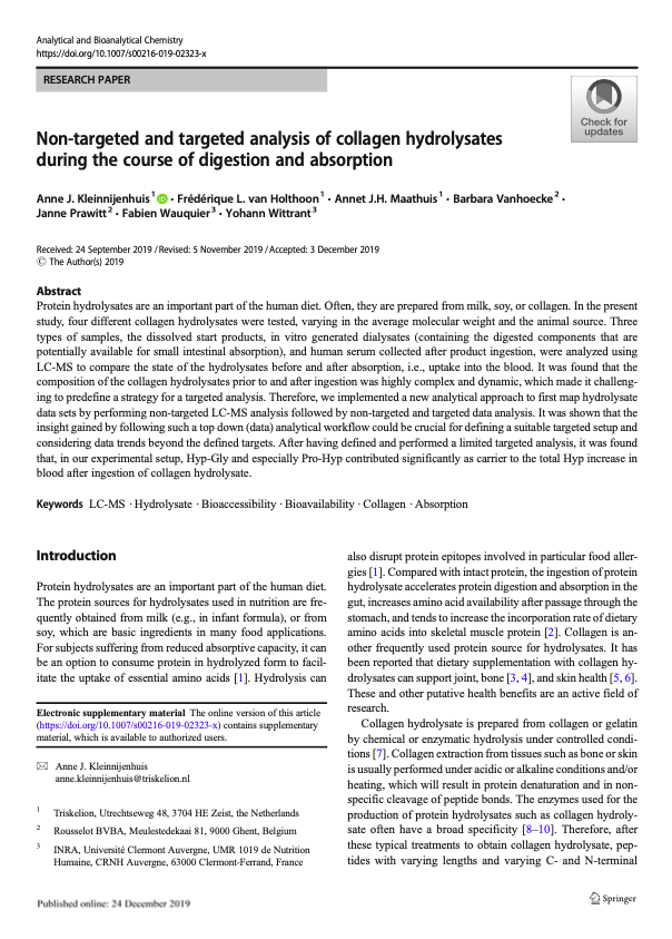 Analyse ciblée et non ciblée des hydrolysats de collagène au cours de la digestion et de l'absorption