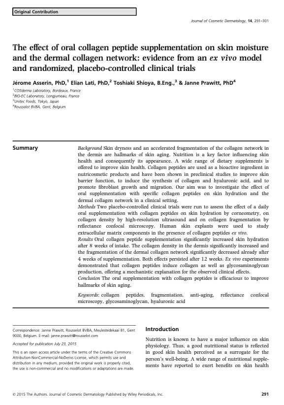 L'effet de la supplémentation en peptides de collagène oral sur l'hydratation de la peau et le réseau de collagène dermique